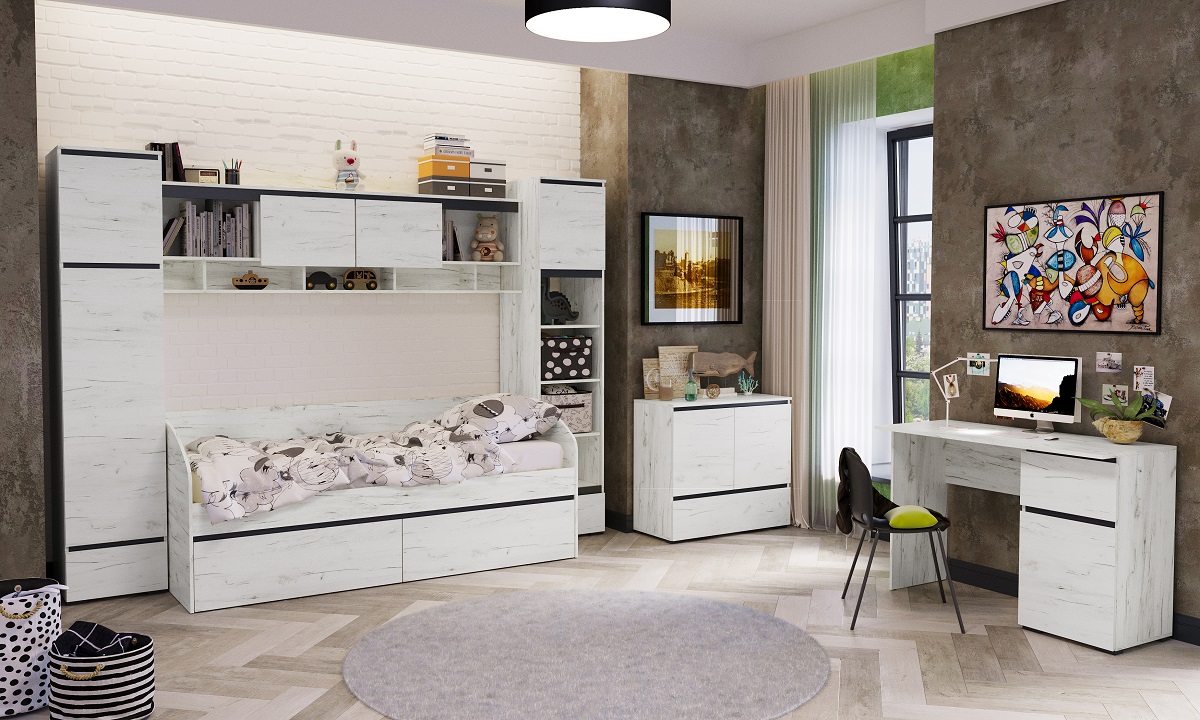 Модульная детская Гретта (Дуб крафт белый/Антрацит)