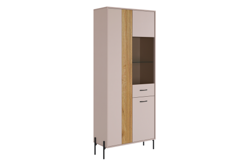 Шкаф двухдверный Доминика со стеклом (Кашемир/Дуб крафт золотой)