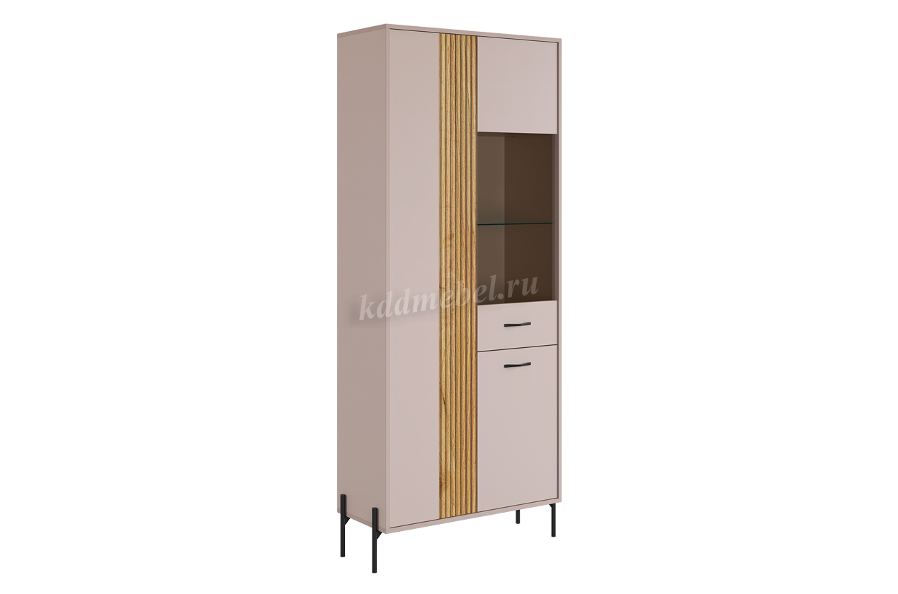 Шкаф двухдверный Доминика со стеклом (Кашемир/Дуб крафт золотой) наличие товара: