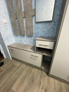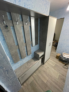 Длина места в коридоре для прихожей составляла ~1710 мм (но сама прихожая длиной 1000 и шкаф 560), пришлось придумать, как выйти из ситуации: купил в строительном магазине похожую по цвету доску ЛДСП 1200х300 мм, подрезал её по длине и поставил вместо верхней доски над вешалкой, а ту доску использовал для наращивания промежутка (150 мм) между прихожей и шкафом и немного сместил выдвижной ящик. А также остался материал на полочку в шкаф, что я и сделал. Ручки были заменены на другие, 4 из 6 петель поменял на с доводчиком, результатом доволен. Сама прихожая за такие деньги нормального качества, но хотелось бы, конечно, получше) Кромки на досках ЛДСП приклеены слабовато, при попадании влаги достаточно быстро начинают разбухать Цвет приятный. В использовании меньше месяца. p.s. почему можно только две фотки загрузить... |