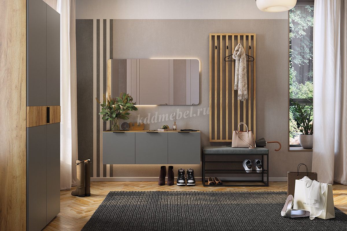 Вешалку "Бери" можно использовать, как самостоятельное изделие или дополнить шкафами и антресолями из серии "Бери".