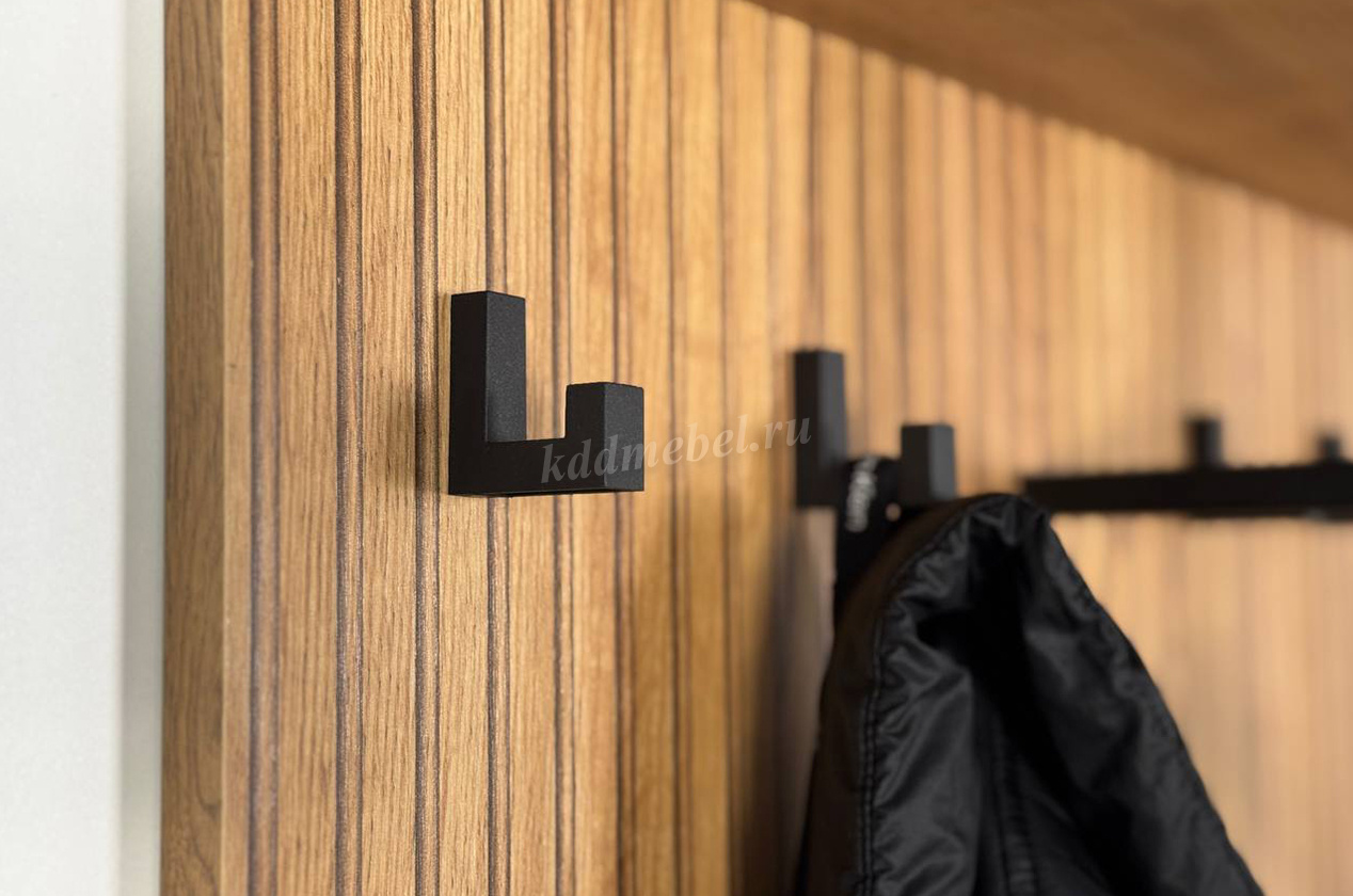 Вешалка 1 "Бодрум" – стильное и функциональное решение для организации пространства в вашем доме. Эта вешалка сочетает в себе элегантный дизайн и практичность, идеально подходя для прихожей, спальни или гостиной. Принт, имитирующий вертикальную фрезеровку придает вешалке уникальный и современный вид, добавляя текстуру и глубину. Крючки предоставляют удобное место для хранения верхней одежды, сумок или аксессуаров. Держатель для плечиков позволяет организовать хранение одежды, сохраняя ее в идеальном состоянии. Полка служит дополнительным пространством для хранения головных уборов.