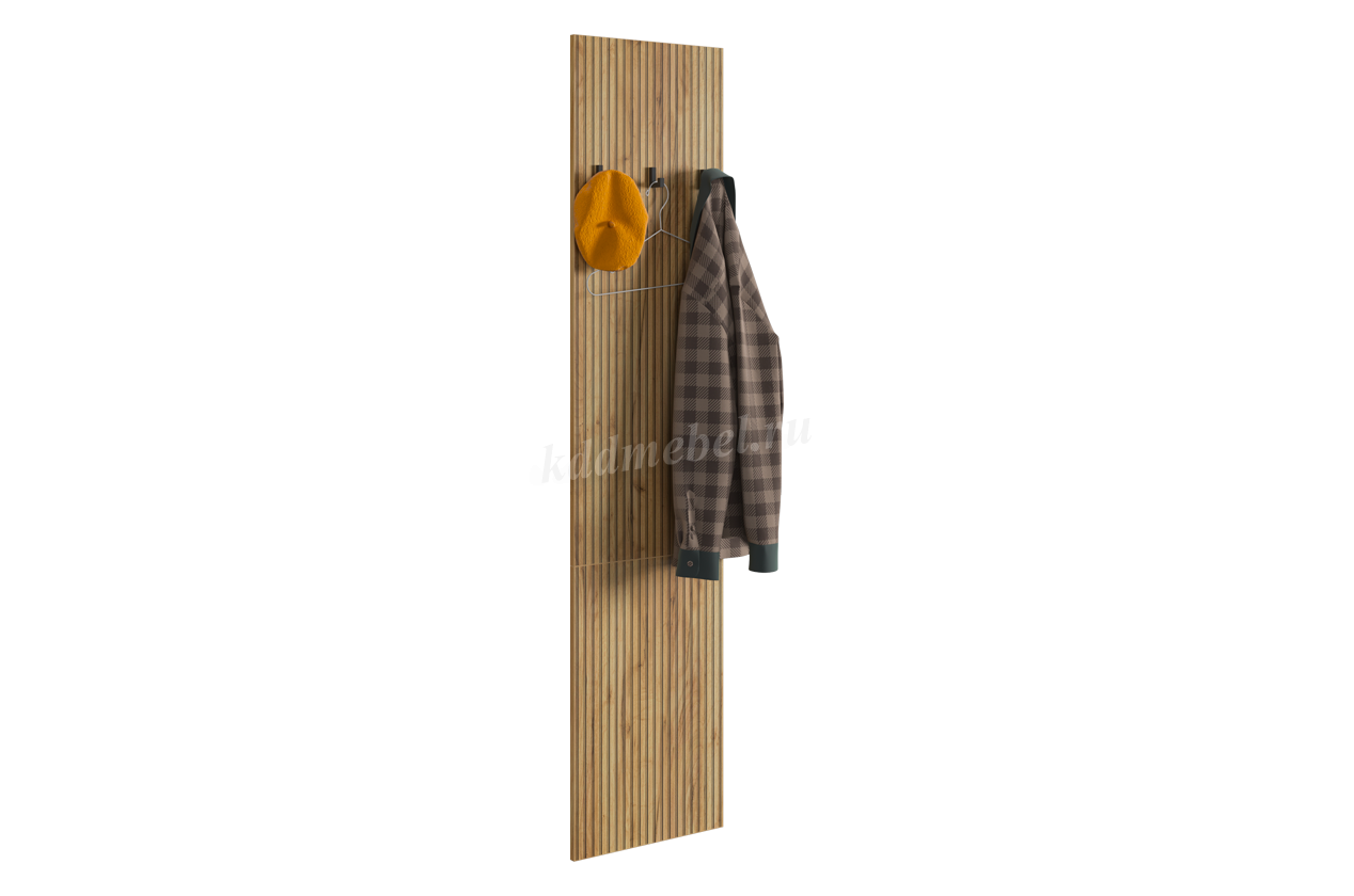 Вешалка 3 "Бодрум" – стильное и функциональное решение для организации пространства в вашем доме. Эта вешалка сочетает в себе элегантный дизайн и практичность, идеально подходя для прихожей, спальни или гостиной. Принт, имитирующий вертикальную фрезеровку придает вешалке уникальный и современный вид, добавляя текстуру и глубину. Крючки предоставляют удобное место для хранения верхней одежды, сумок или аксессуаров. Держатель для плечиков позволяет организовать хранение одежды, сохраняя ее в идеальном состоянии. Полка служит дополнительным пространством для хранения головных уборов.