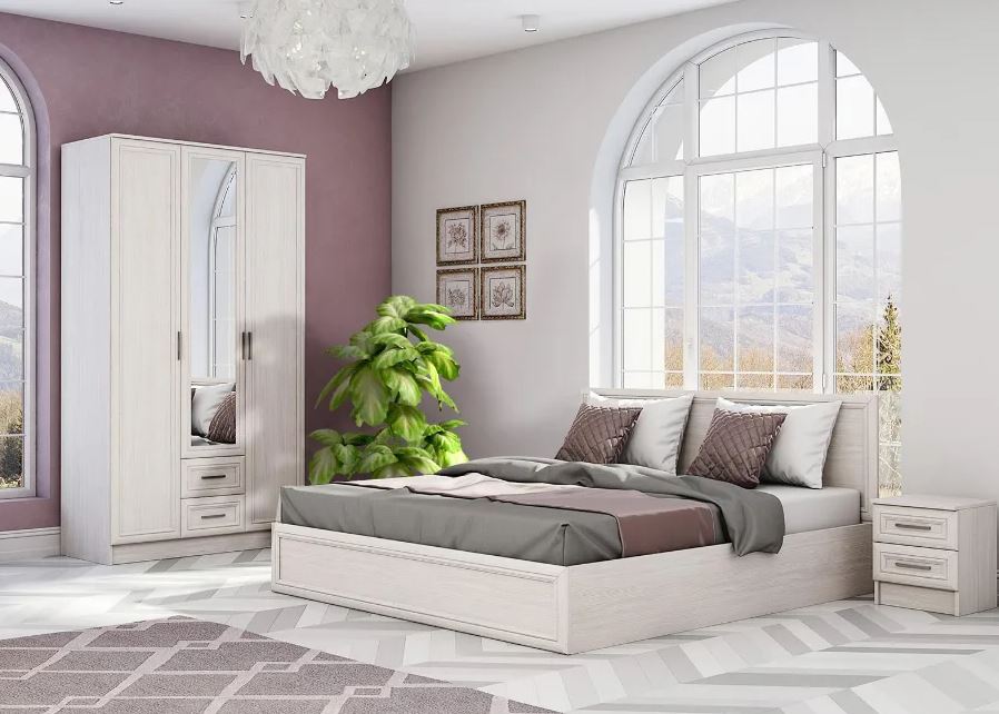 Модульная спальня Принцесса, позволяет подобрать мебельный гарнитур в помещение любых размеров и конфигураций. Материал корпуса ЛДСП 16 мм. Фасады ЛДСП по периметру оформленные декоративной рамкой МДФ. Набор мебели Принцесса исполнен в одной стилистике, благодаря чему смотрится очень гармонично.