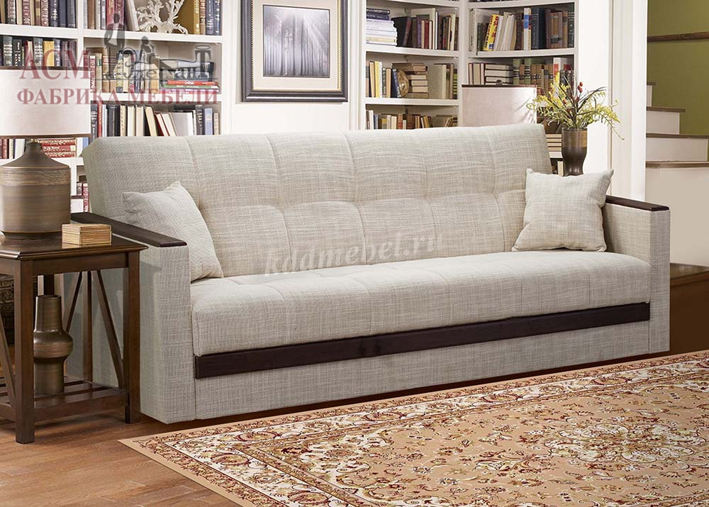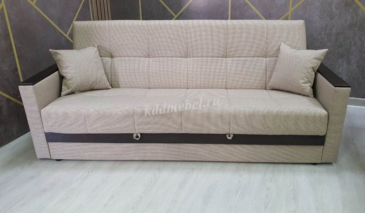 При трансформации требуется расстояние между диваном и стеной. Мебель является пристенной. Механизм «Книжка» прост и надежен в эксплуатации. Напольное покрытие в процессе раскладки не задействовано, Вы можете использовать пушистые ковры или дорогие паркеты. Емкость для хранения постельных принадлежностей с ламинированным основанием обеспечит Вам дополнительное пространство для хранения и сэкономит Ваше время при подготовке дивана ко сну. Ламинированное основание обеспечит простоту и удобство при уборке. Декоративные накладки из МДФ на подлокотниках и передней части короба, сочетают в себе представительность и элегантность, придают изящность дизайну