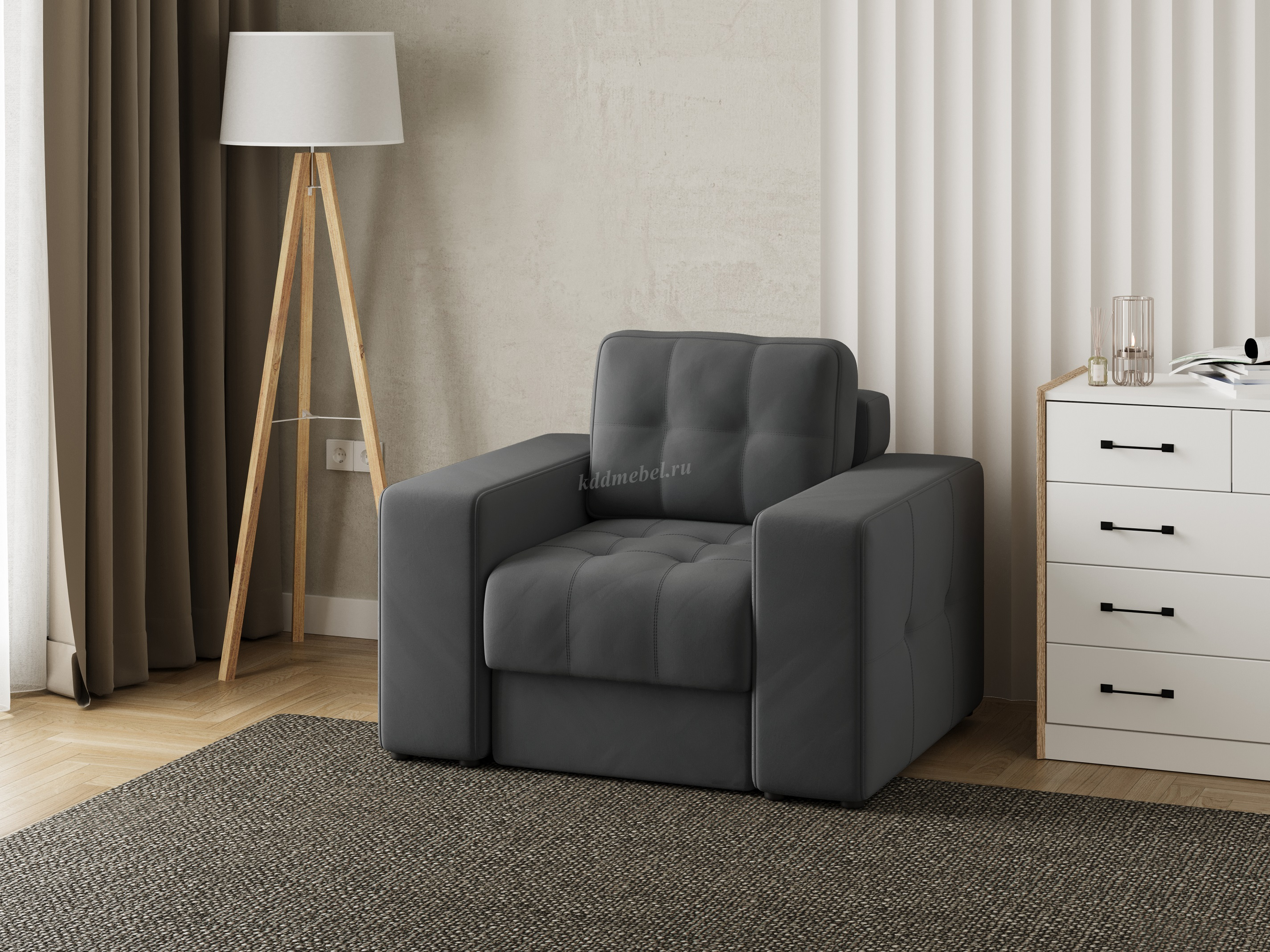 Подлокотники шириной 265 мм, обтянутые тканью и простеганные двойной отделочной декоративной строчкой.