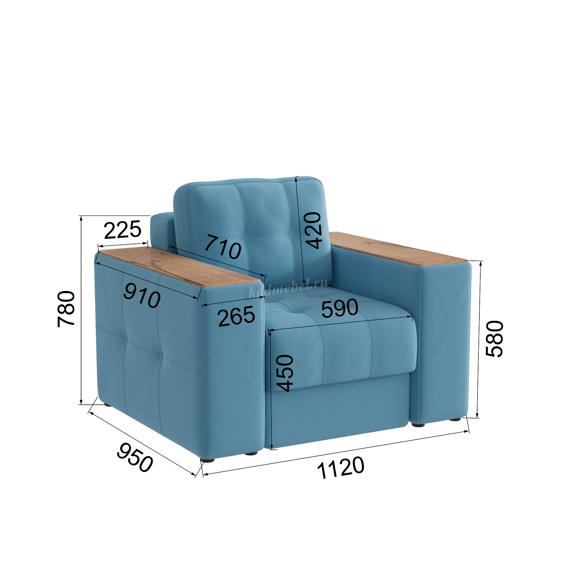 Описание Кресло Виконт (Светло-голубой/Дуб канадский)