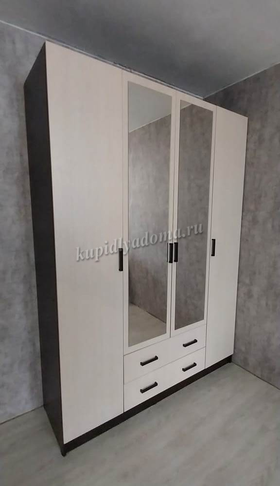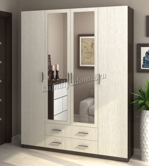 Вместительный четырехдверный шкаф "Нарцисс-3"с зеркальными фасадами — оптимальное решение для хранения одежды в спальне или прихожей. Изящное исполнение в лучших традициях стиля украсит интерьер и принесет в него уютные нотки. Внутреннее наполнение шкафа предусматривает просторные универсальные отделения для хранения белья и одежды. Посередине расположена платяная секция со штангой для вешалок, а по бокам находятся два отдела с полками.