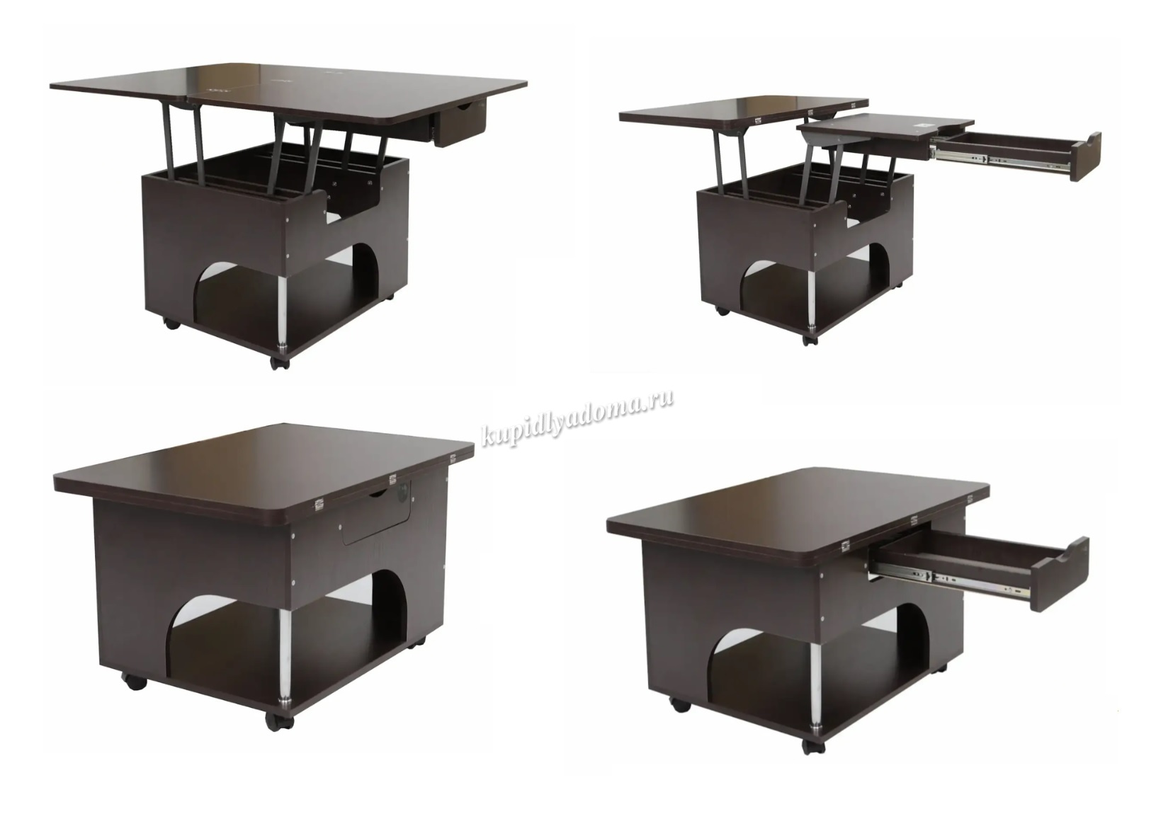Журнальный стол трансформер «Стэп» это умная экономия пространства. Простой в использовании механизм трансформации позволит Вам увеличить поверхность стола в два раза по площади и высоте и превратить журнальный стол в обеденный за считанные секунды.