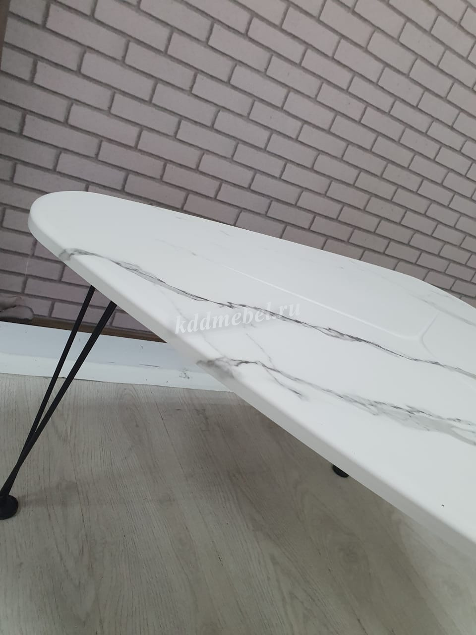Прочная конструкция облегченных ножек из металла и столешницы прекрасно выдерживает нагрузки.